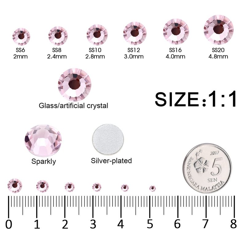 • 💎Product Packaging: Box Packaging SS6 2MM - 1680 Pcs, SS8 2.4MM - 1120 Pcs, SS10 2.8MM - 600 Pcs, SS12 3MM - 480 Pcs, SS16 4MM - 240 Pcs, SS20 4.8MM - 120 Pcs, 1 pcs Tweezers and 1 pcs Picking Pen