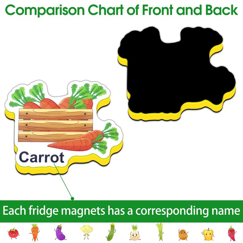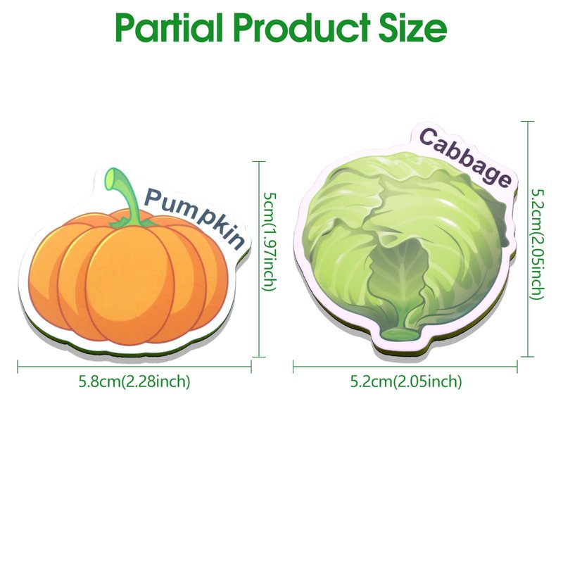 - Different Educational Style: This food magnets for fridge are not only decorative, but also have extraordinary educational significance. Each magnet has a corresponding name, through these vivid and lovely vegetable patterns, children can easily recognize and learn the names and appearance characteristics of various vegetables, stimulating their interest in healthy eating and crops.