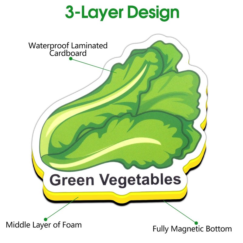 - Three-Layer Design: This toddler fridge magnet adopts three-layer design, its surface is covered with a layer of waterproof laminated cardboard, which makes the magnet not easy to be damaged by moisture; the middle is filled with foam, which increases the magnet's softness and lightness; the bottom is made of the same size of the pattern's magnetic material, which ensures that the magnetic sticker firmly attached to the refrigerator and is not easy to fall off or slide.
