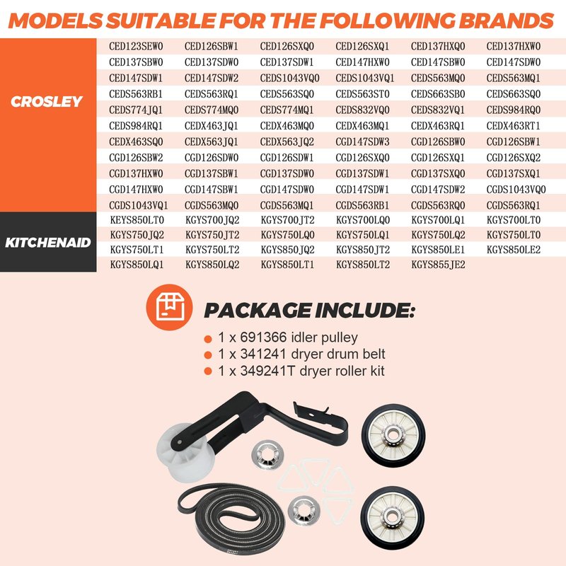 4392065 Dryer Maintenance Repair Kit by Beaquicy - Replacement for Whirlpool Ken-More Crosley Admiral Amana Dryer - Package Includes 349241t Drum Roller 341241 Belt and 691366 Idler Pulley