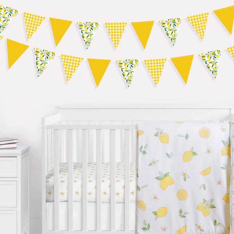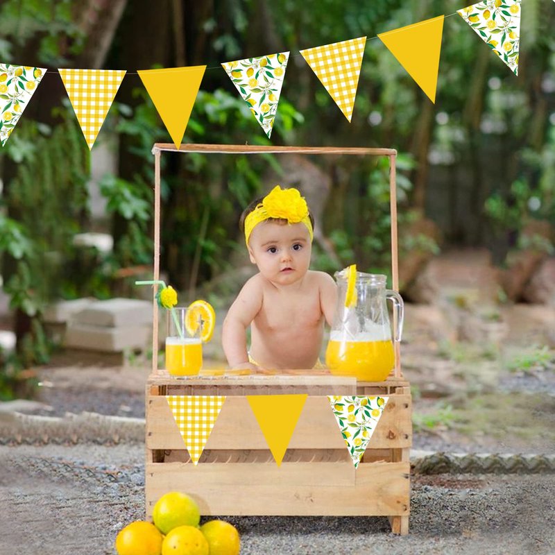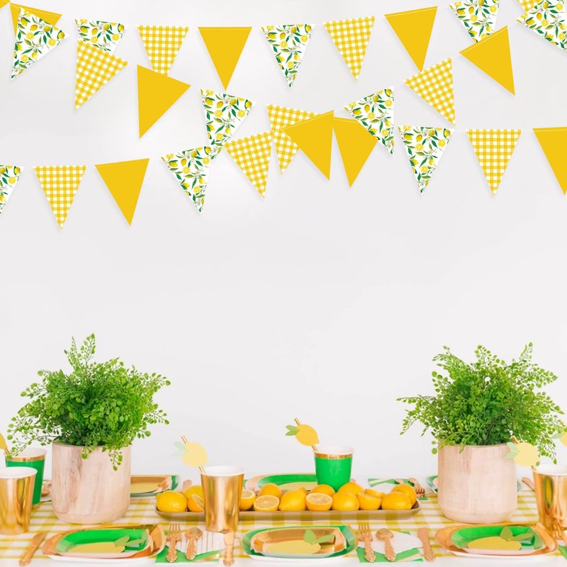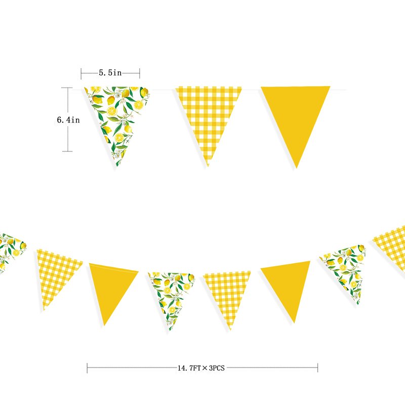 - ðPACKAGE CONTAINS-3 string of yellow plaid lemon theme hanging bunting banner,Each string of this lemon triangle banner is 14.7feet/ 4.5meters.Total length is 44 feet/ 13.5 meters.