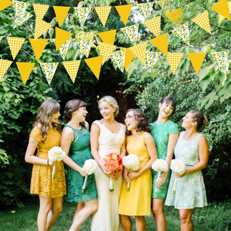 44 Ft Lemon Party Decorations Yellow Plaid Floral Lemon Banner Bunting Hanging Paper Triangle Garland Streamer for Wedding Bridal Shower Engagement Bachelorette Baby Shower Birthday Party Supplies