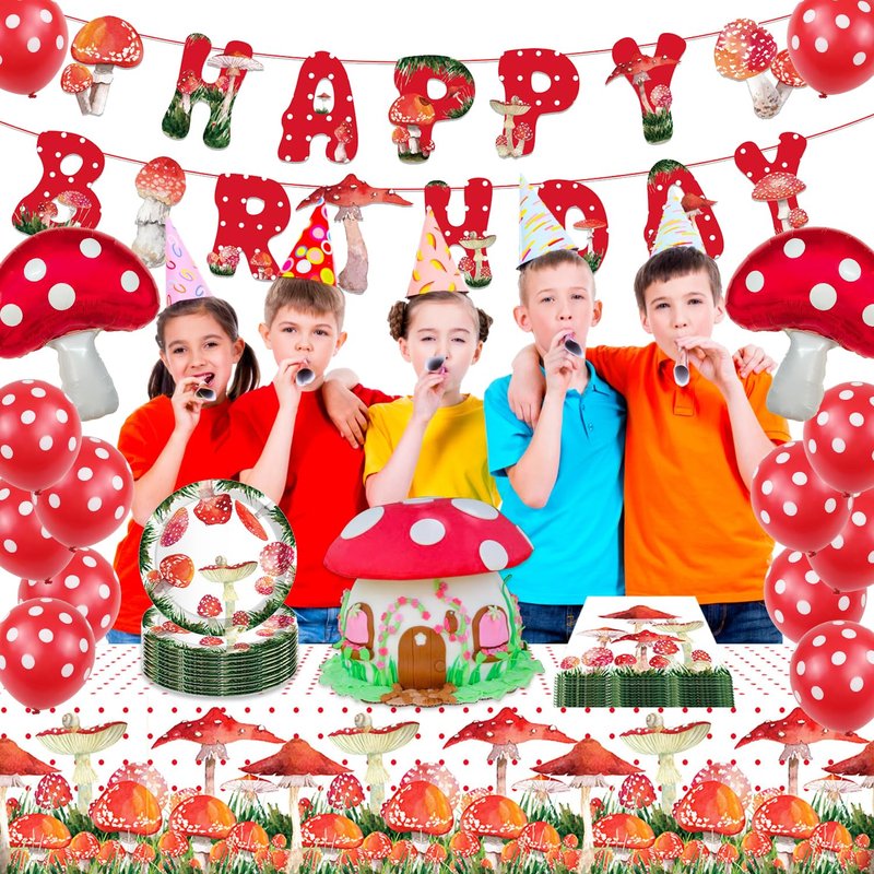 - Mushroom Birthday Decorations: Whether it's a birthday party or a mushroom themed party, these fashion and bright mushroom party supplies are sure to bring cheers and joy to everyone involved, they will be sure to stand out at parties and become great gifts for your party. You can decorate the party with your kids, make the time before the party warm and happy