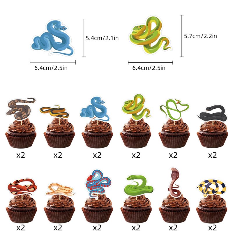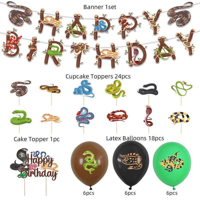 - Snake Party Supplies: You will receive 44 pcs Snake party kits, Includes 1 set Happy Birthday Banner, 1 pcs Cake Topper, 24 pcs Cupcake Topper, 18 pcs Balloon, Abundant quantity and styles for you to prepare a unforgettable snake party and give a surprise to your guests.