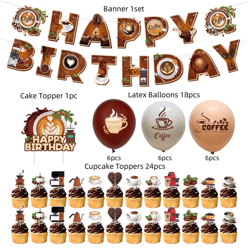 - Coffee Themed Party Decorations: This Set Includes A Coffee Happy Birthday Banner, Cake Topper, Cupcake Toppers, And Balloons, All Designed To Bring A Festive Atmosphere To Your Coffee-Themed Celebration.