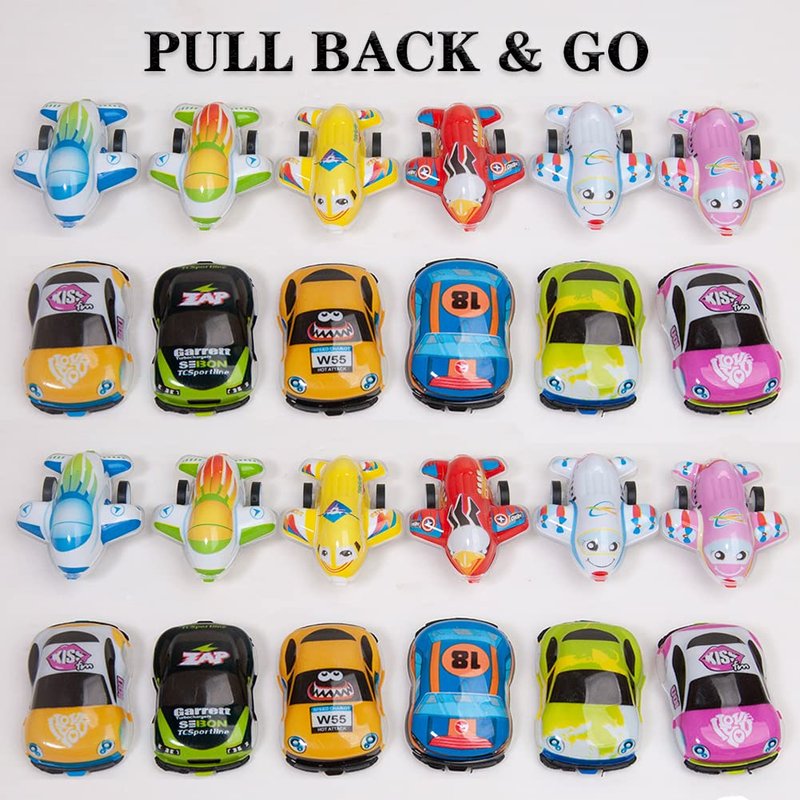- Comes with 23 small pull back cars and 23 small pull back planes.