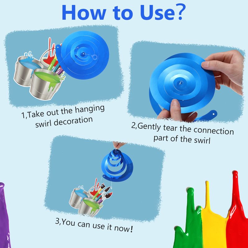- Easy to Assemble: the art party card and lovable hanging swirls are easy to hang, definitely turning your art birthday party decorations into a masterpiece, you can assemble these hanging swirls, hanging them from walls, doorway, the ceiling, tree branches in your backyard for outdoor parties