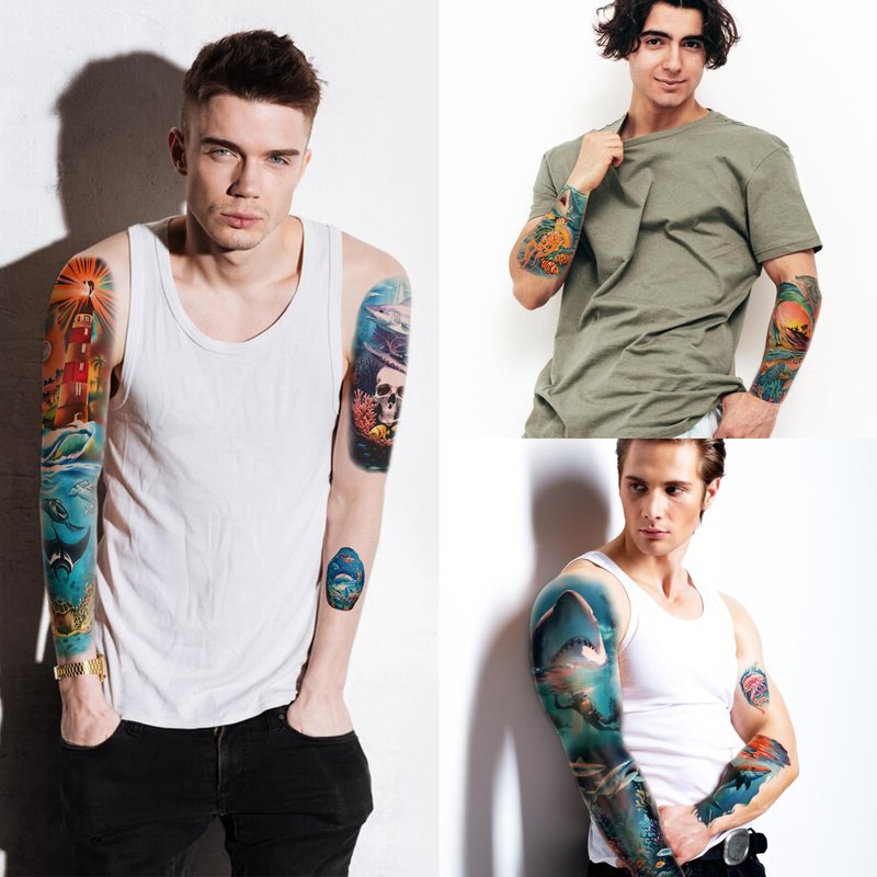 46 Sheets Temporary Tattoo for Men Women, 8 Full Arm Shark Dolphin Fake Tattoos, 8 Half Arm Ocean Jellyfish Turtle Fish Fake Tattoos, 30 Tiny for Adults Kids Body Tattoos Stickers Waterproof Realistic