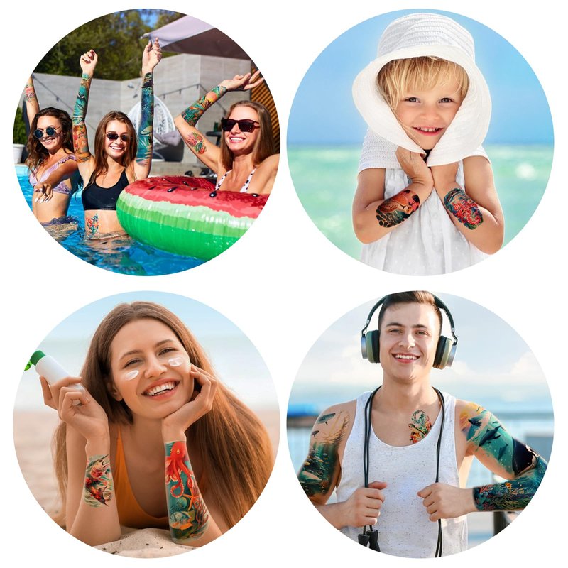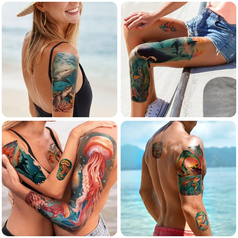 • UNIQUE DESIGN -- include Sharks, dolphins, turtles, jellyfish, octopus, sea fish, corals, beaches and other colorful underwater elements and more. Can be attached to various parts of the body, such as arms, shoulders, back, thighs, waist, etc. Our tattoo sticker for girls, teenagers, women, men, adults & kids