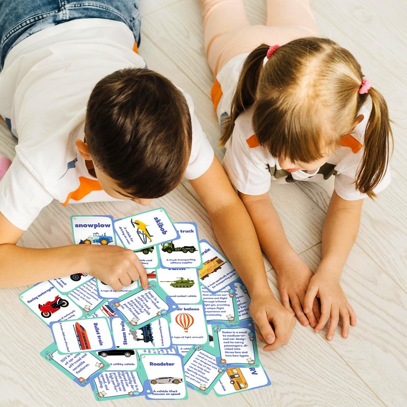 46PCS Transports Cognition Flash Cards for Kids,Cognitive Flash Cards for Cars Truck Vehicle Airplane, Waterproof Learning Flashcards for 3+ Years