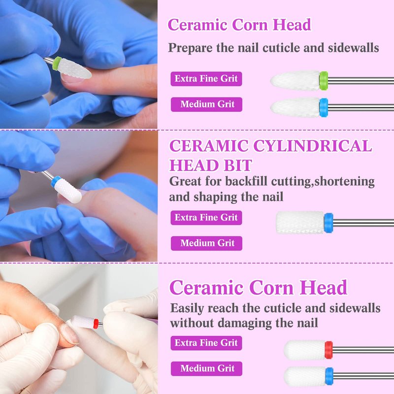 - Suitable for Most Electric Nail Drills: the ceramic nail drill bits are compatible with 3/32 inch rechargeable or electric manicure nail drills, the pointed design makes it easier to remove the dead skin near the nails; The appropriate handle size can protect your hands in the process of polishing nails