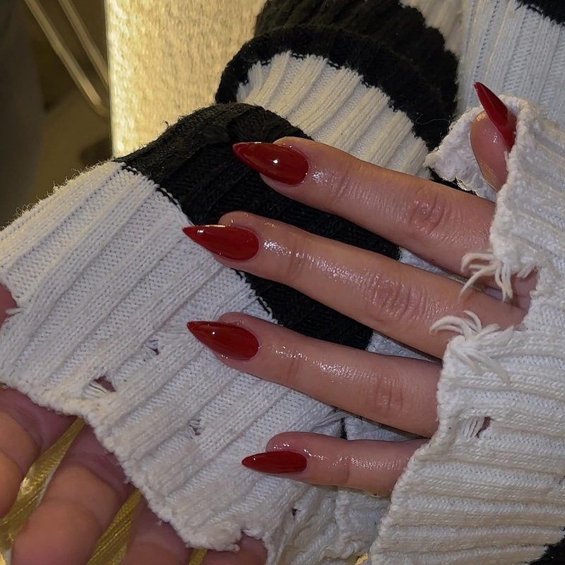 - đăSalon-Quality Almond Nails Gel x Nailsă Experience the joy of salon-quality stick on nails for women almond shape in the comfort of your own home.Wine Red fake nails Press ons bring the sophistication and elegance of a professional salon without the hassle of appointments or spend a lot of time and money.
