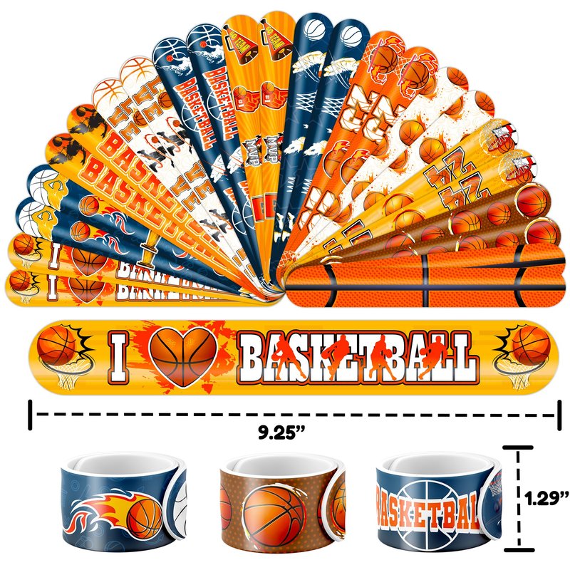 • šŸ„³ć€DELIGHTFUL BASKETBALL PARTY FAVORS BUNDLE怑: Get ready for laughter with our set of 24 temporary tattoo stickers and 24 slap bracelets. Each piece showcases vibrant and adorable designs inspired by the Basketball theme. Perfect for both kids and adults, this bundle ensures endless fun. The bracelets measure 23.5cm x 3.3cm, providing a satisfying "slapping" experience as they effortlessly wrap around your wrist.