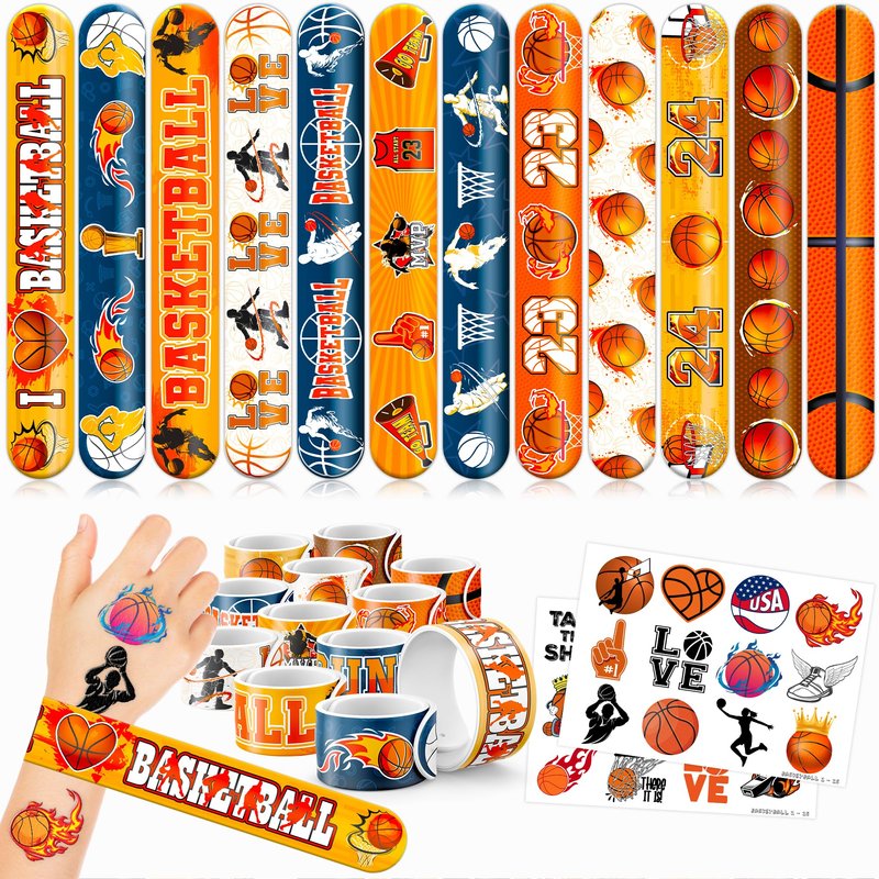 48 Basketball 24PCS Basketball Temporary Tattoos Sticker 24PCS Slap Bracelets Perfect for Themed Birthday Party Favors Baby Showers or Classroom Rewards Ideal Decor and Gifts for Girls and Boys