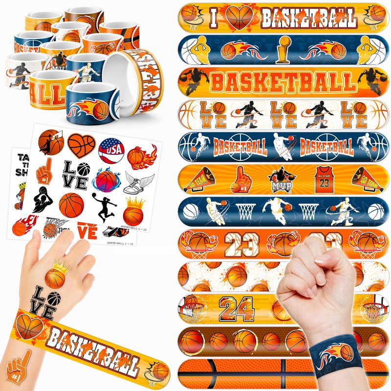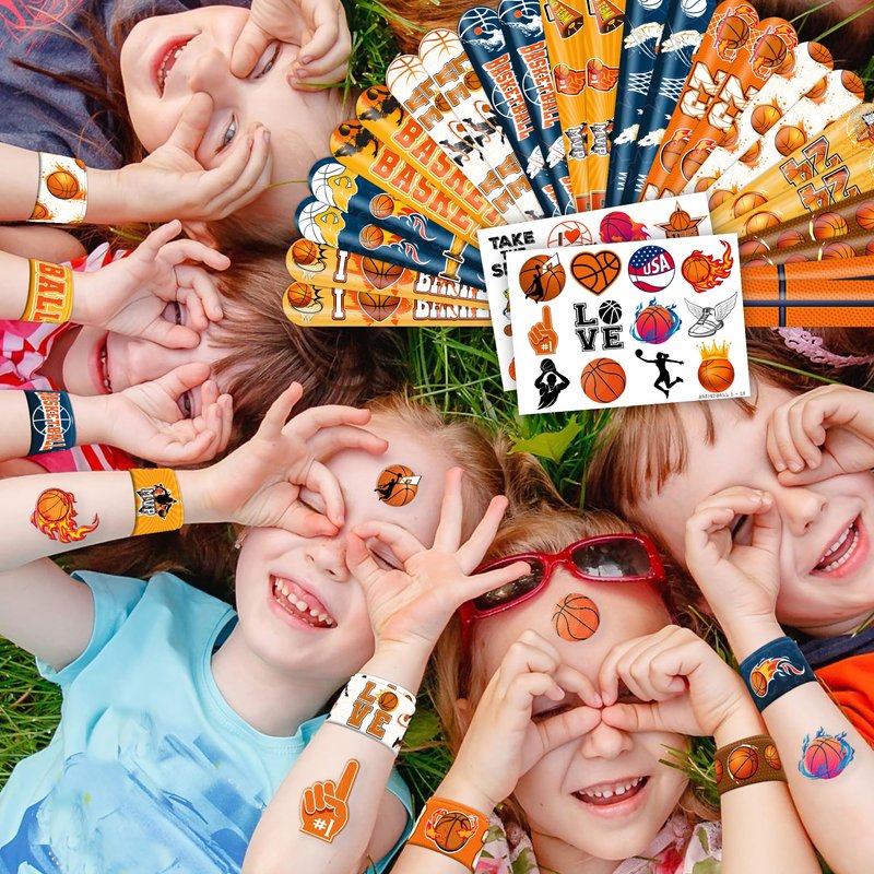 • šŸ˜œć€PERFECT GIFT FOR BASKETBALL ENTHUSIASTS怑: Our Basketball Temporary Tattoos and Slap Bracelets are the perfect gift for people of all ages, from kids to adults. Suitable for any occasion, they offer an affordable and delightful option. Whether for school events, birthdays, or stocking stuffers, this Basketball themed collection adds a fashionable and nostalgic element to anyone's accessory collection, invoking happiness and cherished memories.