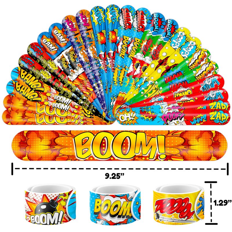 - šćEFFORTLESSLY STYLISHć: Embrace the simplicity and trendiness of wearing our slap bracelets. With just a gentle "slap," they wrap around your wrist effortlessly, creating a comfortable and stylish look. Lightweight and comfortable for extended wear, they're perfect for parties, special occasions, or everyday fashion. These accessories bring a playful charm to any gathering, capturing the joyful spirit of the Hero theme. Let the festivities begin!