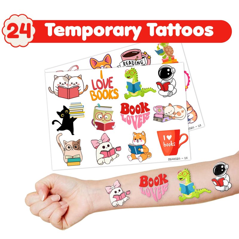- šćPERFECT GIFT FOR ENTHUSIASTSć: Our Love to Read Temporary Tattoos and Slap Bracelets are the perfect gift for people of all ages, from kids to adults. Suitable for any occasion, they offer an affordable and delightful option. Whether for school events, birthdays, or stocking stuffers, this Love to Read themed collection adds a fashionable and nostalgic element to anyone's accessory collection, invoking happiness and cherished memories.