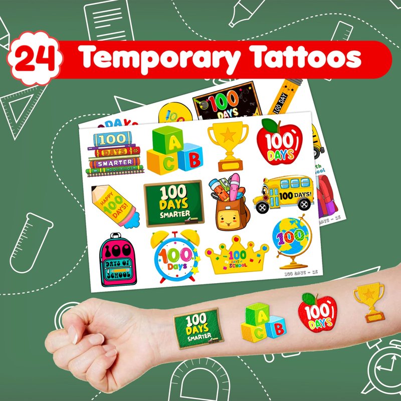 - Style: 100 Days of school Temporary Tattoos; Party Supplies; Decorations; Party Favors; Slap Bracelets;