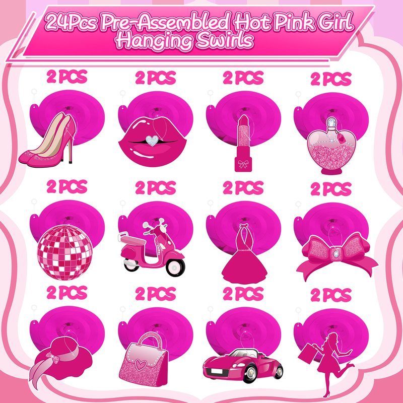 - Girls Party Decorations: You will receive 24 pieces of pre-assembely hot pink girl hanging swirls, this chic hot pink girl party ceiling streamers pattern is rich and varied, plenty of them to create eye-catching and impressive backgrounds, which can easily meet your various decoration needs.