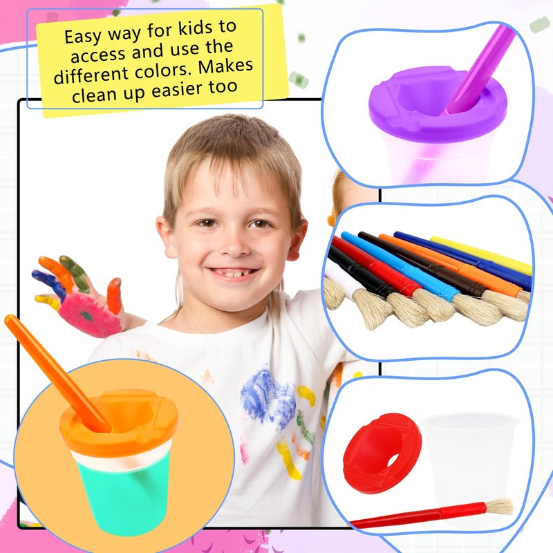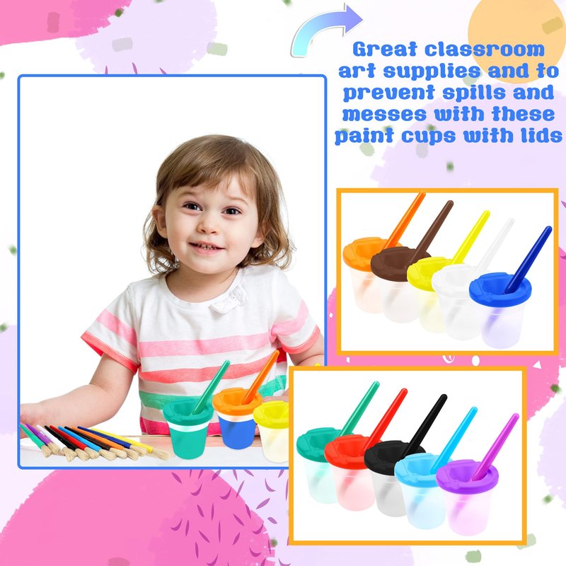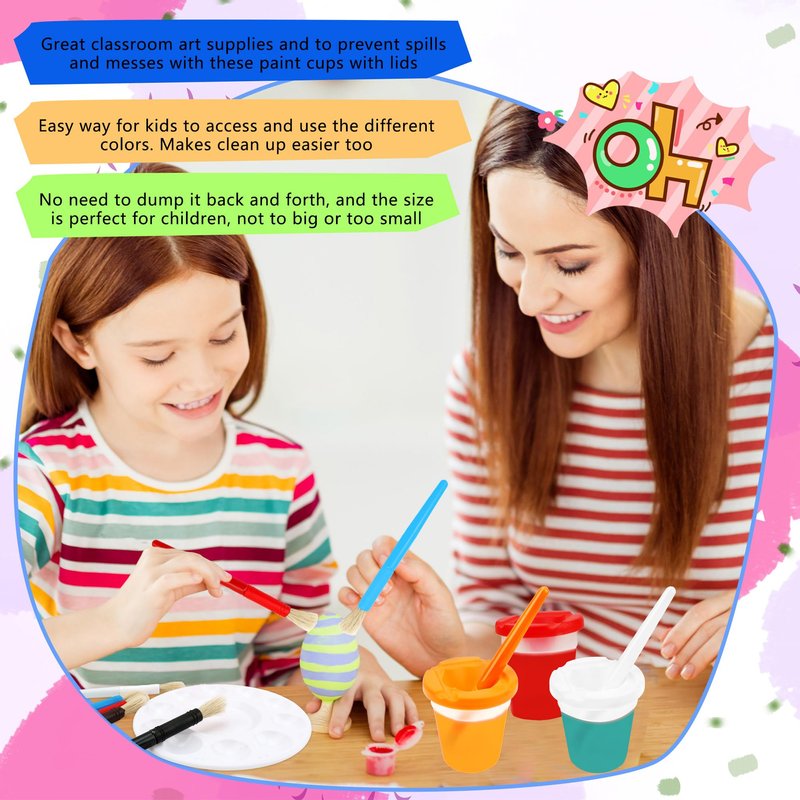 This children's painting cups with lids are perfect for preschool art supplies and for kids to use with washable paint, tempera paint, poster paint, fingerpaint project and easel painting, kids makes the perfect set for art classes, art easel painting, all paint projects, painting parties, kids art craft, and painting classesenjoy complete mess free paint projects for toddlers