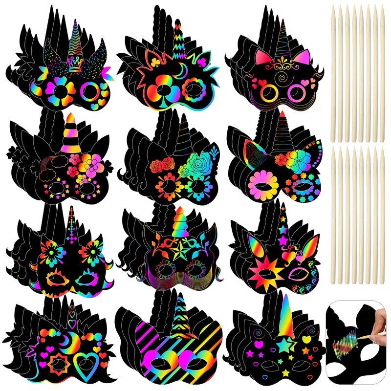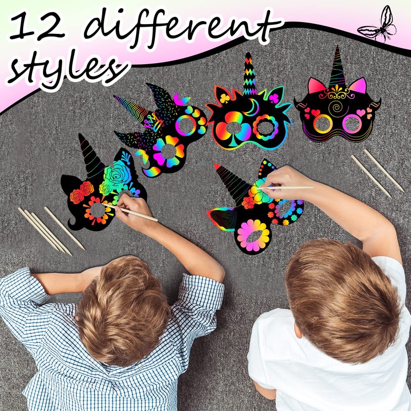 - You Are Offered: the package comes with 48 pcs of unicorn scratch card crafts in 12 different unicorn styles, 4 sheets for each style, plus 24 pcs of wooden sticks, sufficient supplies, different sizes and shapes can meet your different DIY handmade needs