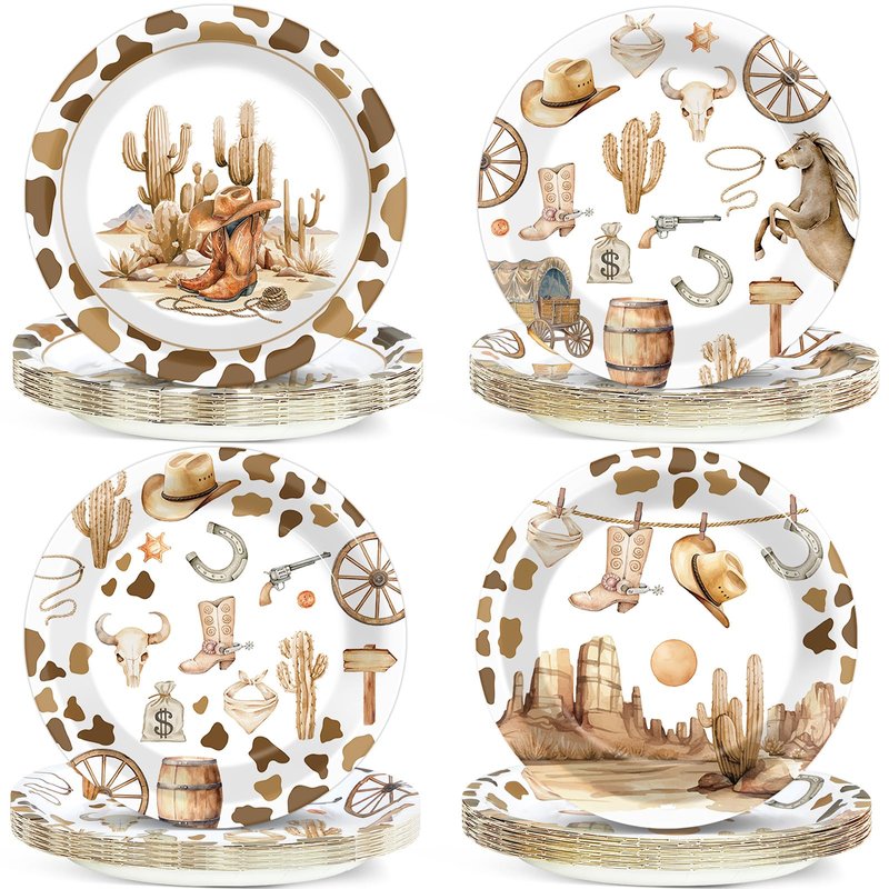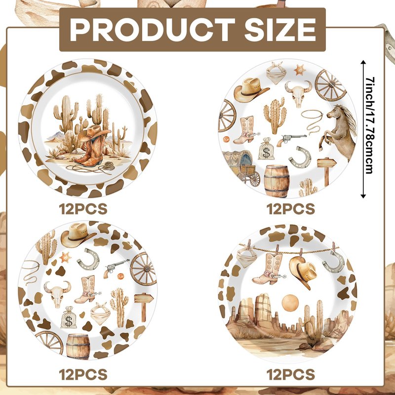 - Package Includes: 48pcs of 7-inch western cowboy paper plates. Featuring western cowboy party decorations can add some unique artistic flair and beautiful visual appeal to your wild west theme party and to impress your guests.
