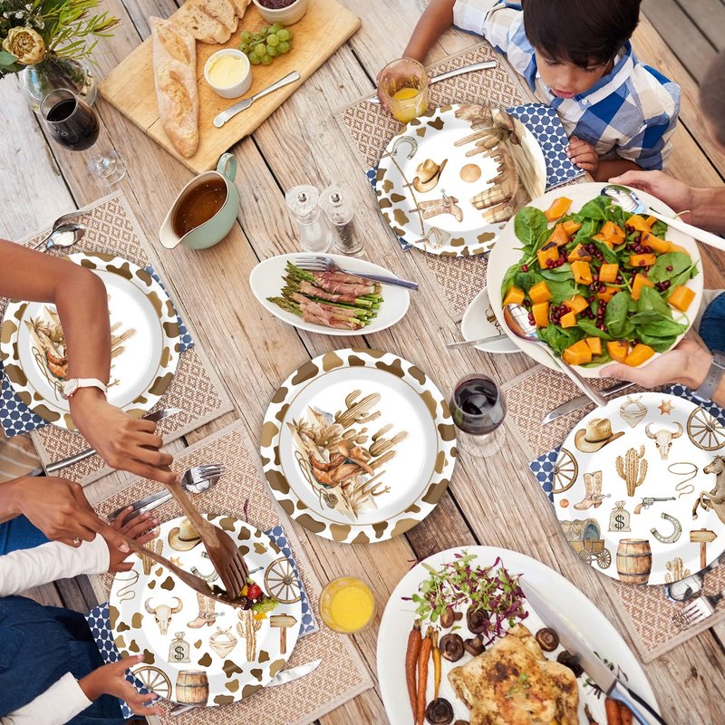 - Widely Used: our western cowboys dinnerware are the perfect addition to cowboy themed party decorations and are perfect for cowboy birthday parties, wild west parties, first birthday, cowgirl theme, cowboy baby showers and rodeo themed parties, as well as birthdays, picnics and more.