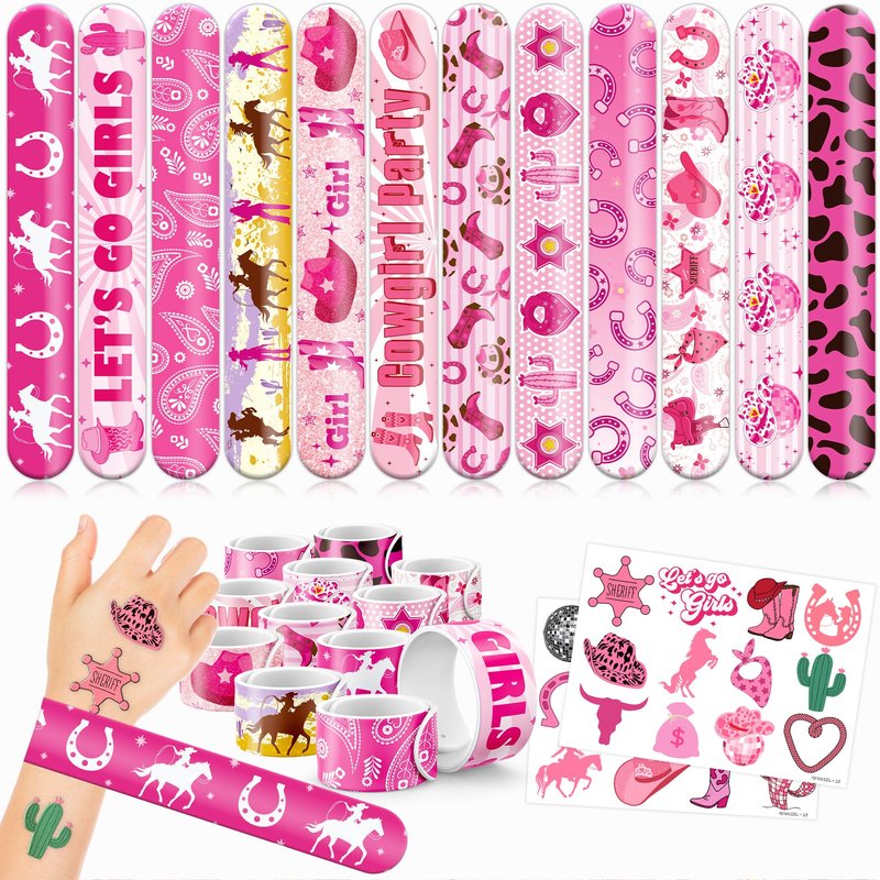 - šćPERFECT GIFT FOR WESTERN COWGIRL ENTHUSIASTSć: Our Western Cowgirl Temporary Tattoos and Slap Bracelets are the perfect gift for people of all ages, from kids to adults. Suitable for any occasion, they offer an affordable and delightful option. Whether for school events, birthdays, or stocking stuffers, this Western Cowgirl themed collection adds a fashionable and nostalgic element to anyone's accessory collection, invoking happiness and cherished memories.
