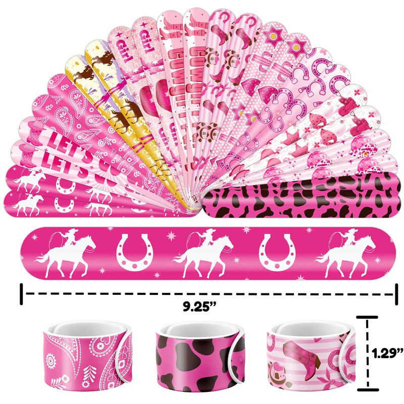 - šćEFFORTLESSLY STYLISHć: Embrace the simplicity and trendiness of wearing our slap bracelets. With just a gentle "slap," they wrap around your wrist effortlessly, creating a comfortable and stylish look. Lightweight and comfortable for extended wear, they're perfect for parties, special occasions, or everyday fashion. These accessories bring a playful charm to any gathering, capturing the joyful spirit of the Western Cowgirl theme. Let the festivities begin!