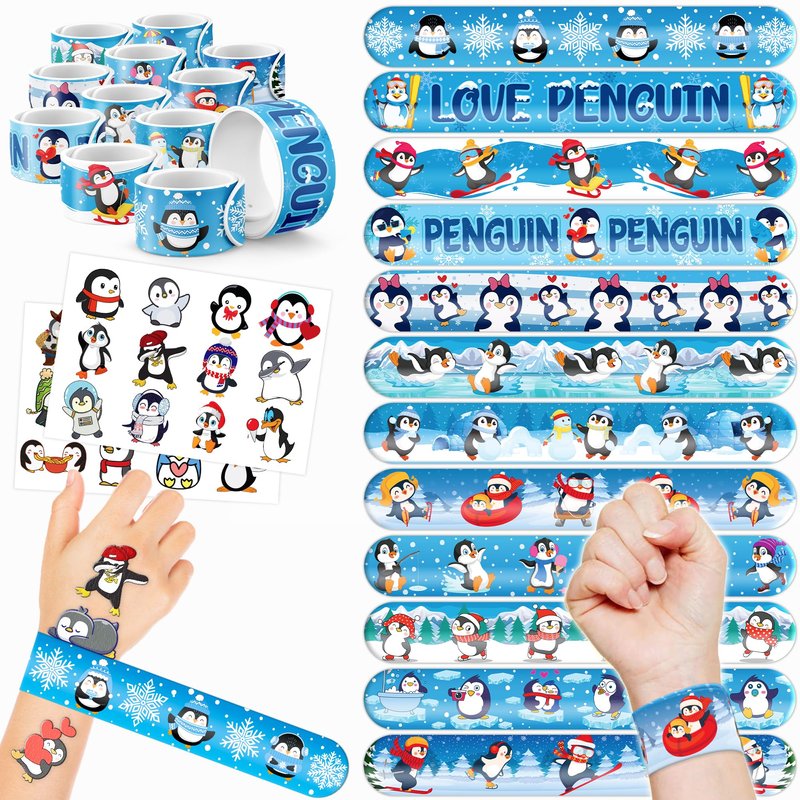 - šćPERFECT GIFT FOR PENGUIN ENTHUSIASTSć: Our Penguin Temporary Tattoos and Slap Bracelets are the perfect gift for people of all ages, from kids to adults. Suitable for any occasion, they offer an affordable and delightful option. Whether for school events, birthdays, or stocking stuffers, this Penguin themed collection adds a fashionable and nostalgic element to anyone's accessory collection, invoking happiness and cherished memories.