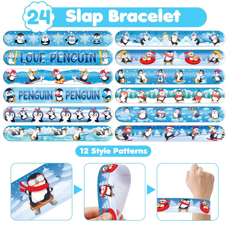 - šćEFFORTLESSLY STYLISHć: Embrace the simplicity and trendiness of wearing our slap bracelets. With just a gentle "slap," they wrap around your wrist effortlessly, creating a comfortable and stylish look. Lightweight and comfortable for extended wear, they're perfect for parties, special occasions, or everyday fashion. These accessories bring a playful charm to any gathering, capturing the joyful spirit of the Penguin theme. Let the festivities begin!