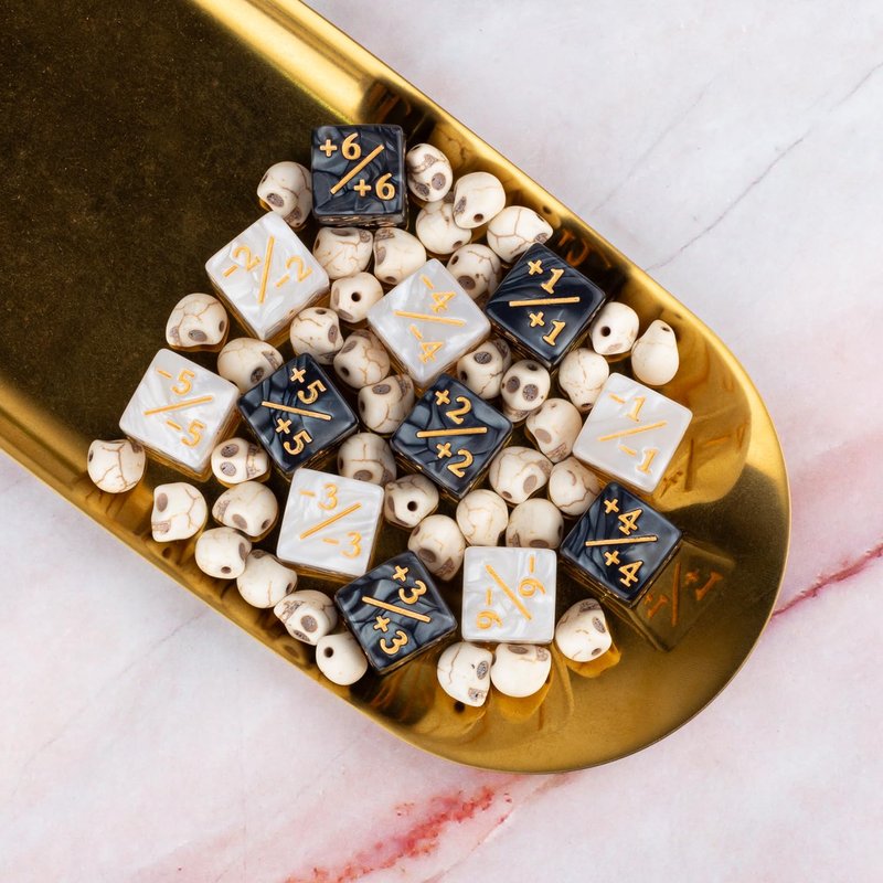 - Package Include: Total 24pcs MTG keywords dice(LIFELINK, REACH, FLYING, HEXPROOF, DEATHTOUCH, INDESTRUCTIBLE / LIFELINK, REACH, FLYING, HEXPROOF, DEATHTOUCH, INDESTRUCTIBLE) and 24pcs dice counters(12 pieces -1~-6 counters & 12 pieces +1~+6 counters) with velvet pouch.