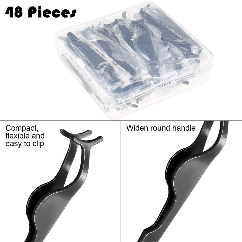 48 Pieces False Eyelash Applicator Tool Plastic Eyelashes Extension Tweezers Fish Tail Clip Tweezers Eyelashes Clip for Lashes Application and Removal (Black)