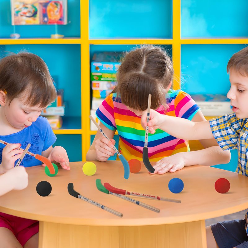 This hockey pencils is equipped with various colors of erasers, together like a real hockey stick, with these soft foam hockey balls can start a "hockey game" with friends on the table, smooth rolling, appropriate bounce, perfect for indoor entertainment, ensuring the integration of pleasure and performance