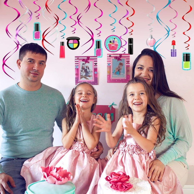 48 Pieces makeup party hanging decorations spa party hanging swirls nail girl theme dizzy danglers for birthday baby shower make up party supplies