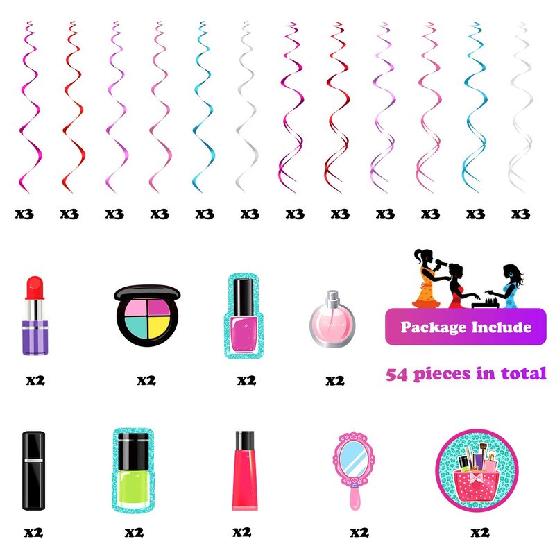 - Durable and safe to use: these spa party hanging streamers are made of quality PVC material and the makeup themed cardstocks are made of paper, odorless and harmless to touch, safe and durable to use, not easy to break, can be applied for multiple times