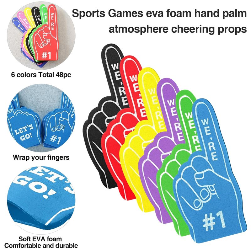 - Widely Applicable: These colorful foam fingers bulk are ideal additions for a variety of occasions,such as football parties,soccer parties,basketball parties,baseball parties,softball parties and other sports events or games,birthdays,athletic meetings,political rallies,cheerleading decorations,etc.which can easily liven up the atmosphere and bring a cheerful mood