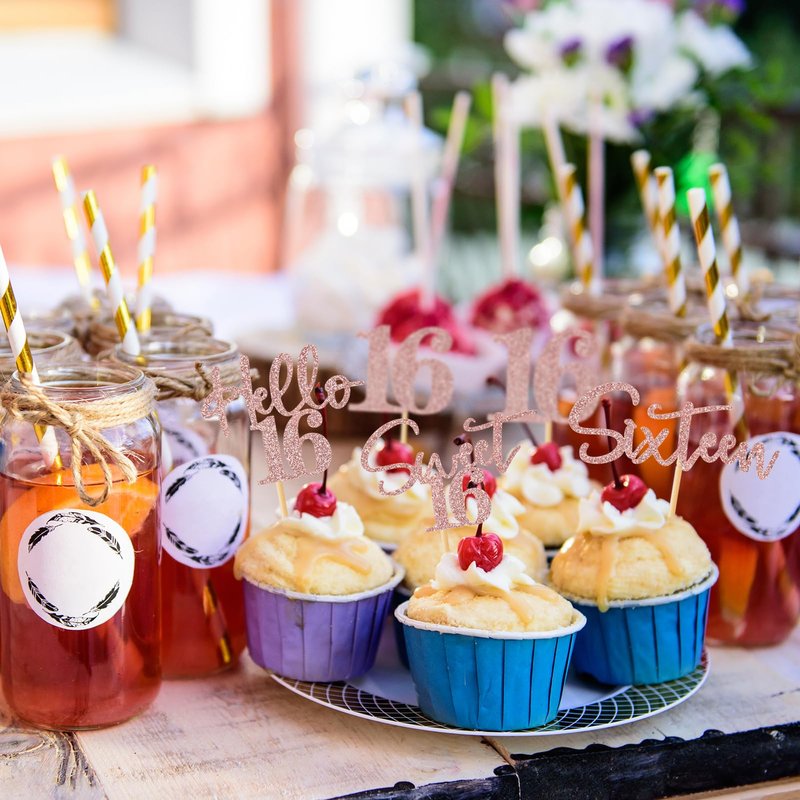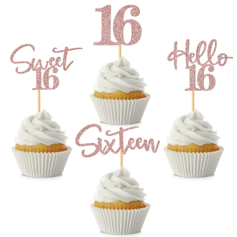 - EXQUISITE PARTY DECORATIONS: These 16th birthday cupcake toppers are printed with "16", "Sixteen", "Sweet 16", "Hello 16" letters, their glittering appearance can create a romantic atmosphere in the light, easily draw attention of guests. This will be a quick and easy way to dress up a simple dessert for your birthday party!