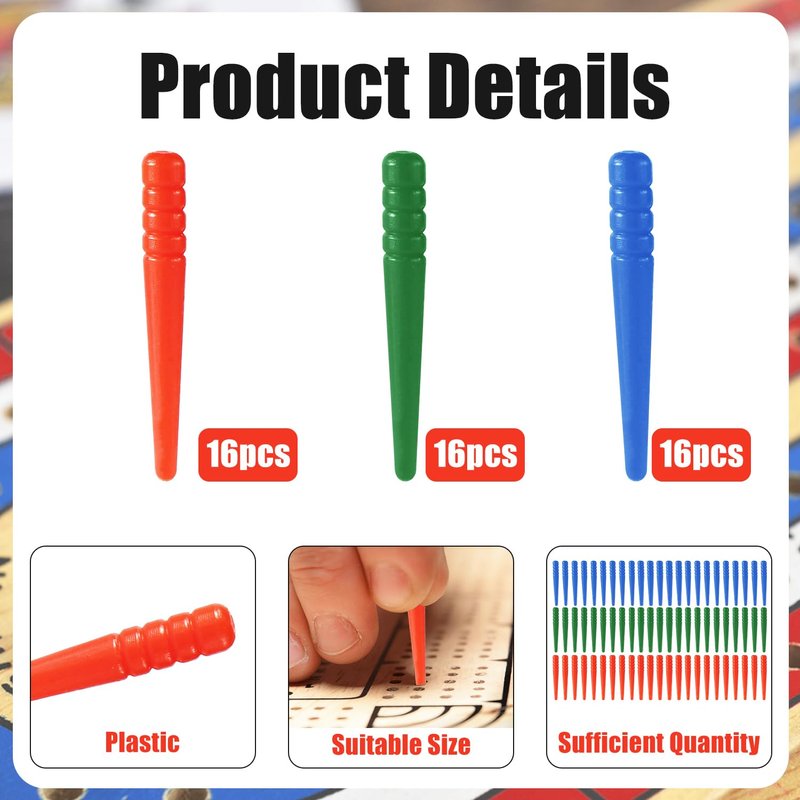- Product Includes: You can receive 48 pieces of cribbage board pegs in 3 colors: blue, green, and red, 16 of each color, sufficient quantity to meet your game need and replacement.