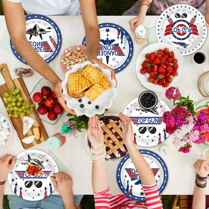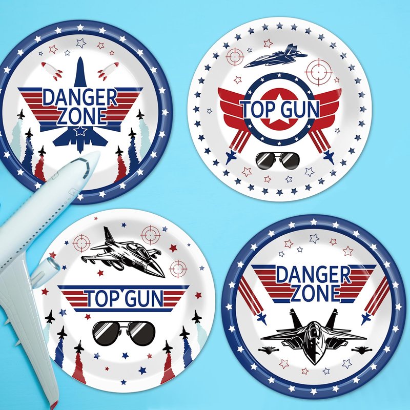 - 2.Exciting Fighter Jet Pilot-themed Design: Our fighter pilot party plates feature aeronautical motifs such as fighter jets, aviator sunglasses, and more, and these eye-catching pilot-themed designs create a unique party atmosphere that can add a touch of sophistication to your table setting.