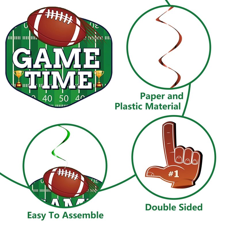 - 【What You Will Get】This football party pack contains a total of 40 football party decorations, including 28 single swirl decorations and 20 carefully assembled football party cut-out cards. You can effortlessly create an eye-catching backdrop to beautify the environment.If you have any questions during the purchase process, please let us know and we will answer you as soon as possible. Your satisfaction is our belief.