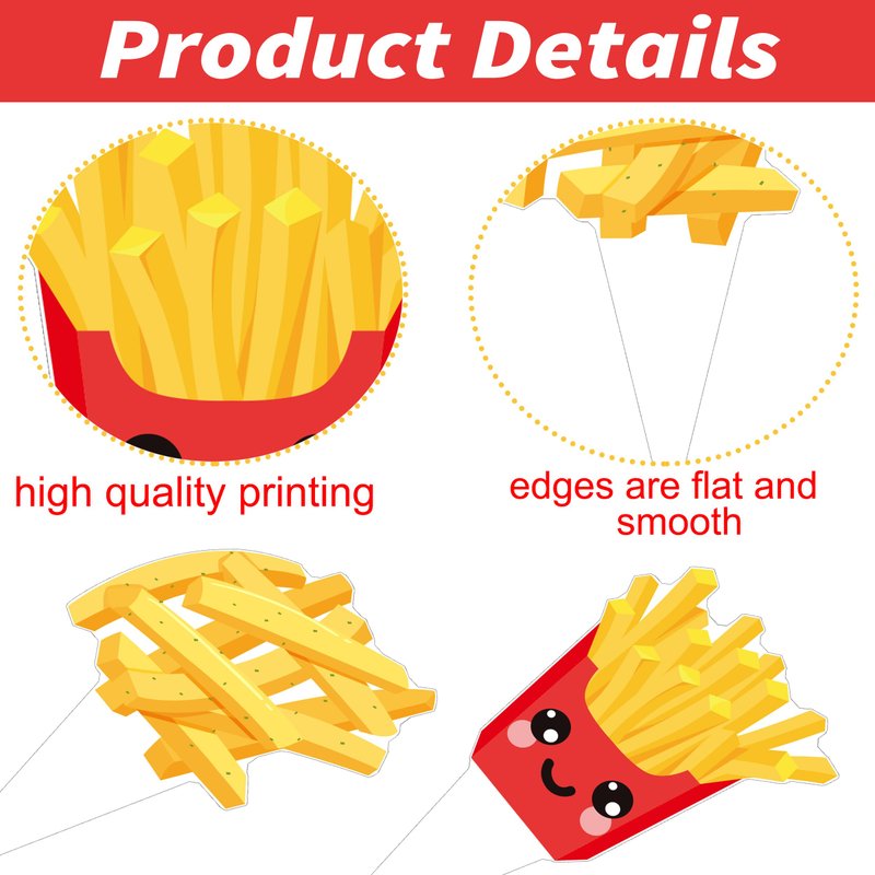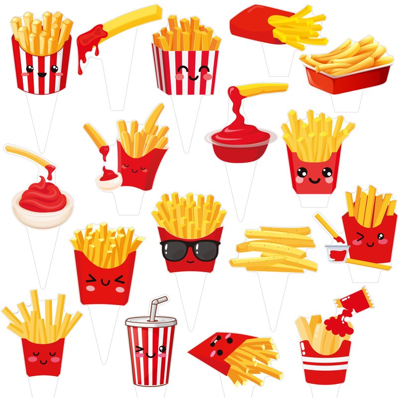 - 【48Pcs french fries cupcake toppers】The french fries party decorations include 48pcs french fries cupcake toppers, perfect for french fries baby shower, french fries birthday party, french fries themed party, fast food birthday party, carnival party, gathering etc.