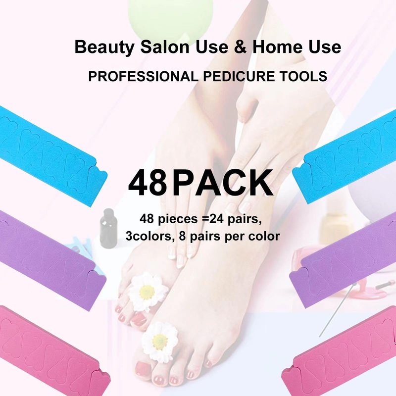 - √ PACKAGE INCLUDE - 24 pairs of beautiful two tone toe seperators with 3 assored colors: Pink, Purple and Blue. Sponge separator are the the best nail art accessory gifts for women gilrs ladies who love beauty and nail pedicures.