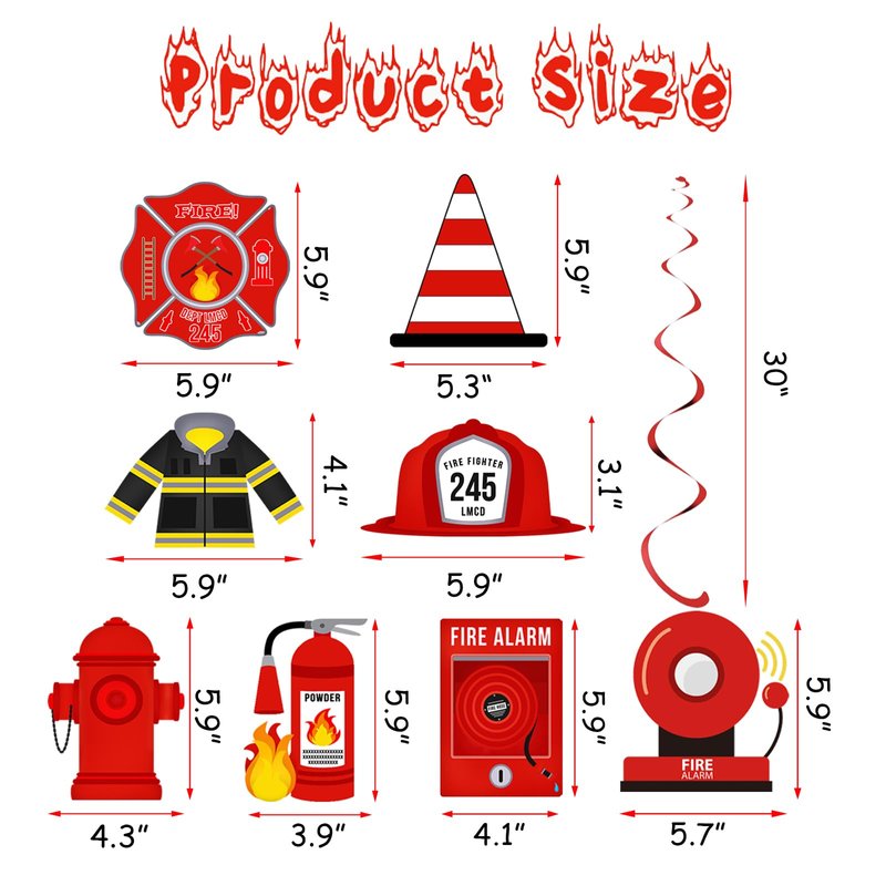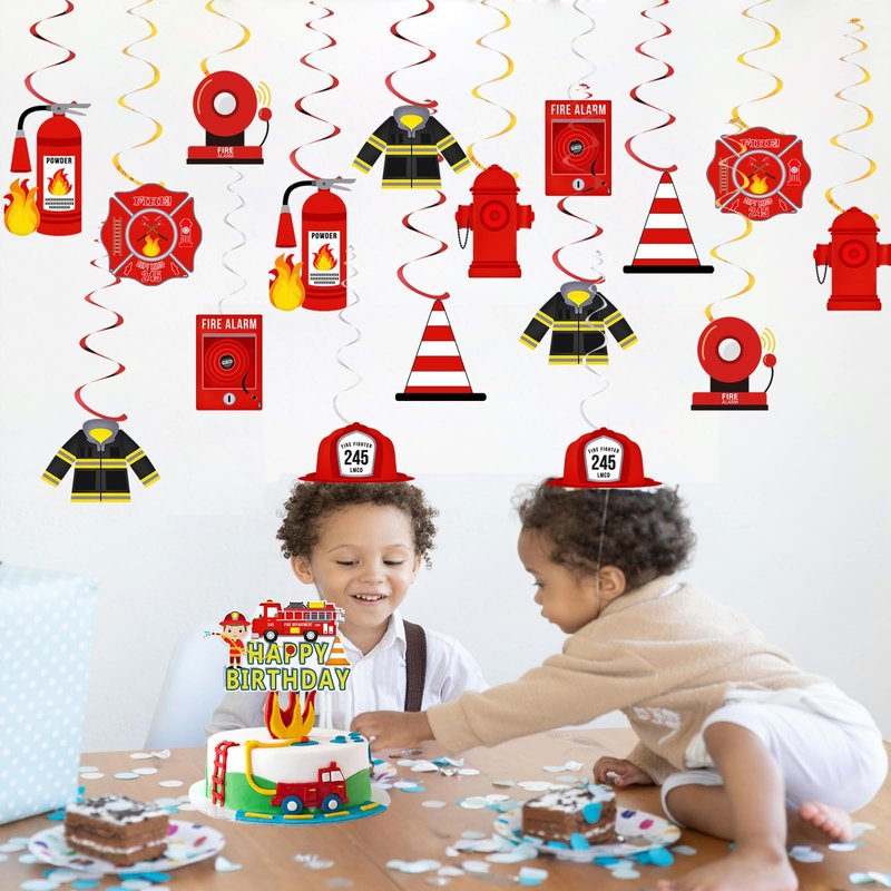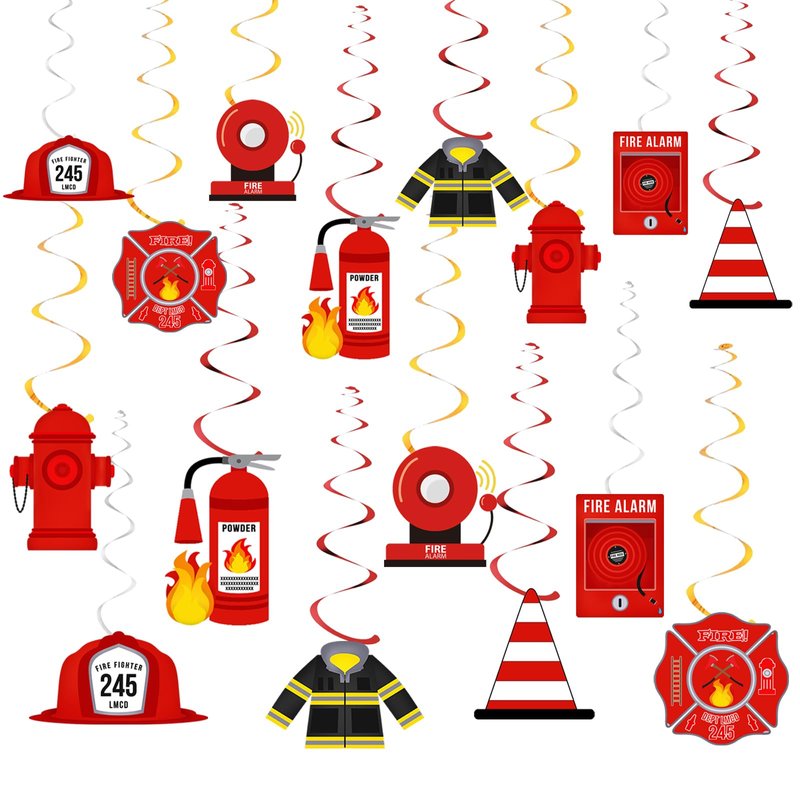 - These firetruck hanging swirls are lightweight and will move and twist in response to even the slightest breeze, generating a beautiful shimmering effect. These firefighter party decoration swirls are excellent for firefighter-themed parties, fire birthday parties, baby showers, and more, suitable for various settings.