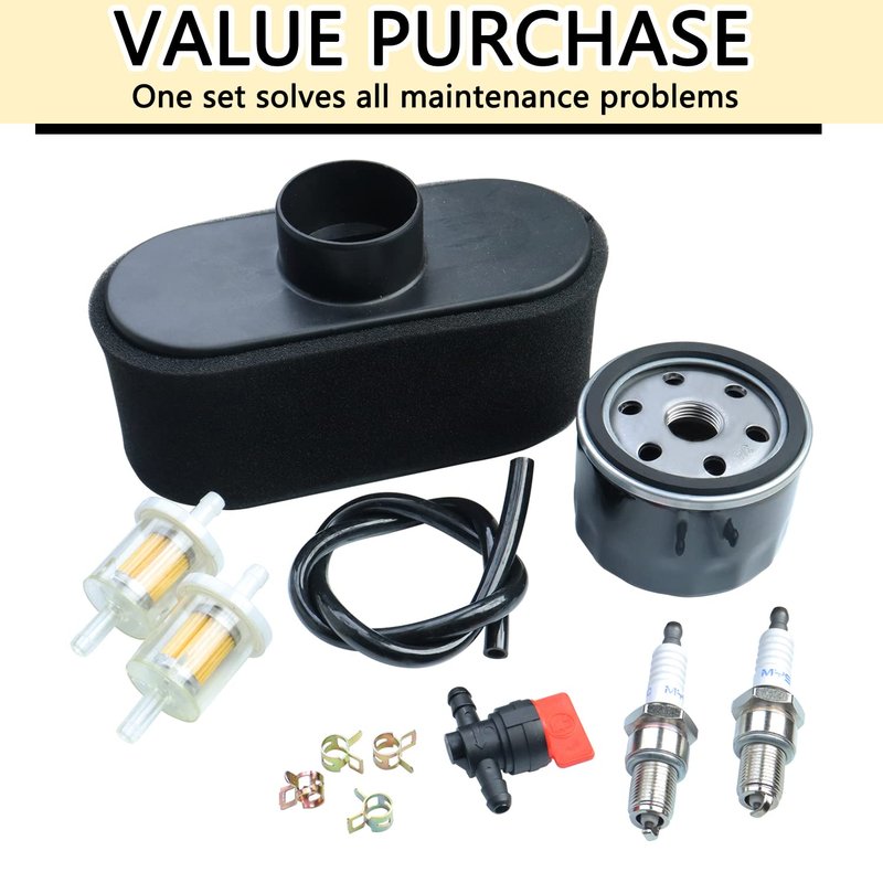 - 【SPECIALIZED PARTS FOR LAWN MOWER】This professional tune up kit has improved air intake and gasoline filtration for your lawn mower tractor, there is no need to worry about them not being OEM compliant, one purchase to solve the basic maintenance problem.