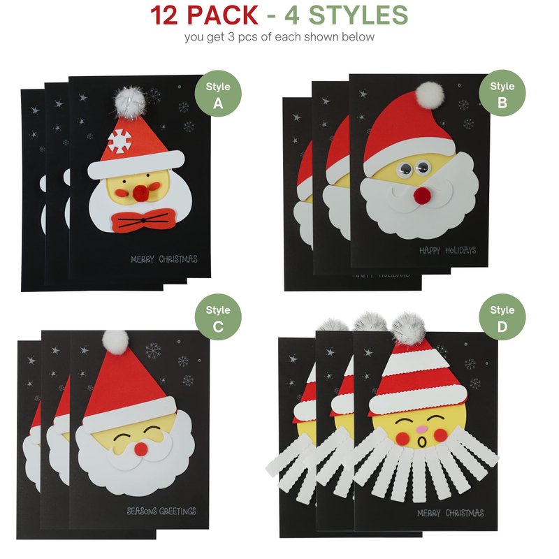 - DIY CARDS CRAFT - 4E’s Novelty Christmas Card Making Craft Kit for Kids Bulk 12 Pack is fun creative activity to get your kids in a festive spirit. Comes in 4 Santa designs, you get 3pcs of each