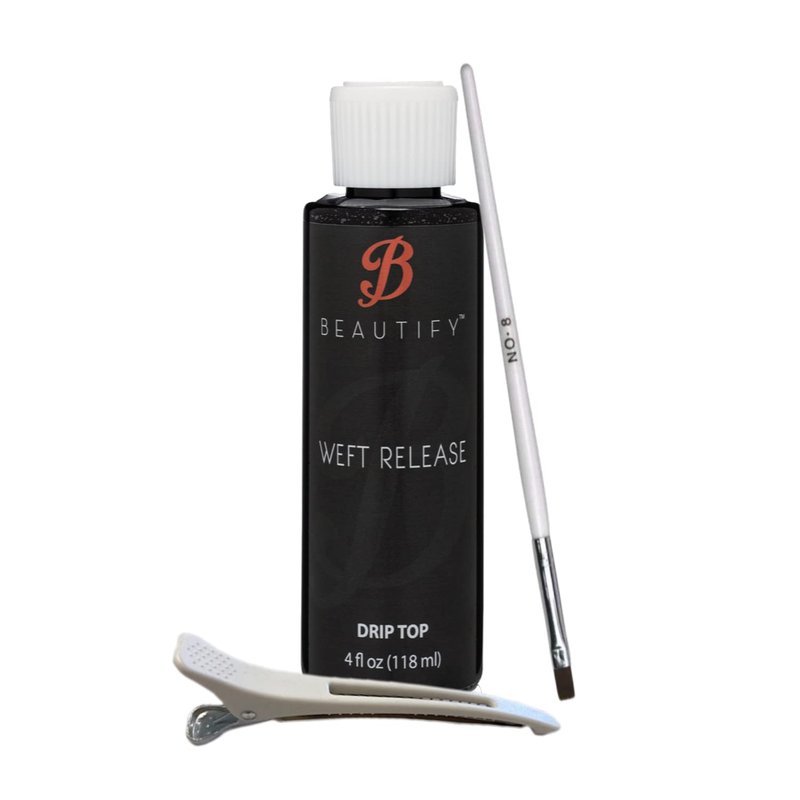 4fl oz Weft Release Drip-Top w/White Brush Applicator & Hair Clip Bundle Pack | Convenient Hair System Removal Kit | Wigs Front Super Bonding Weave Active Lace Melting | Bold Hold Adhesive Remover