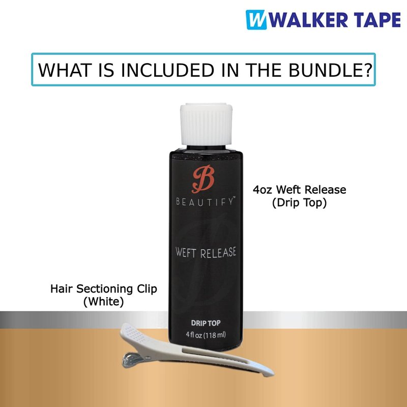 4fl oz Weft Release Drip-Top w/White Hair Sectioning Clip Saver Bundle Pack | Convenient Hair System Removal Kit | Wigs Front Super Bonding Weave Active Lace Melting | Bold Hold Adhesive Remover