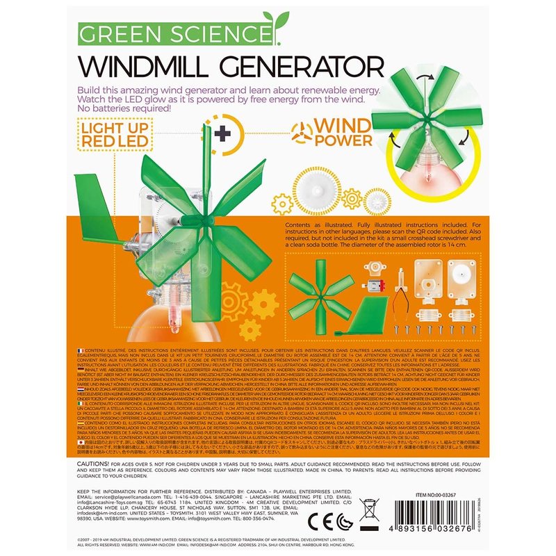 - This kit contains all the materials needed to build a 5-inch windmill generator with LED light. Just add a recycled soda bottle.