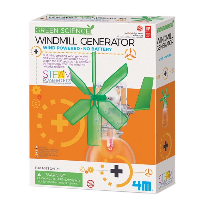4M Toysmith, Green Science Windmill Generator Kit, DIY Science Kit With LED Lights, For Boys & Girls Ages 8+ (Packaging May Vary)